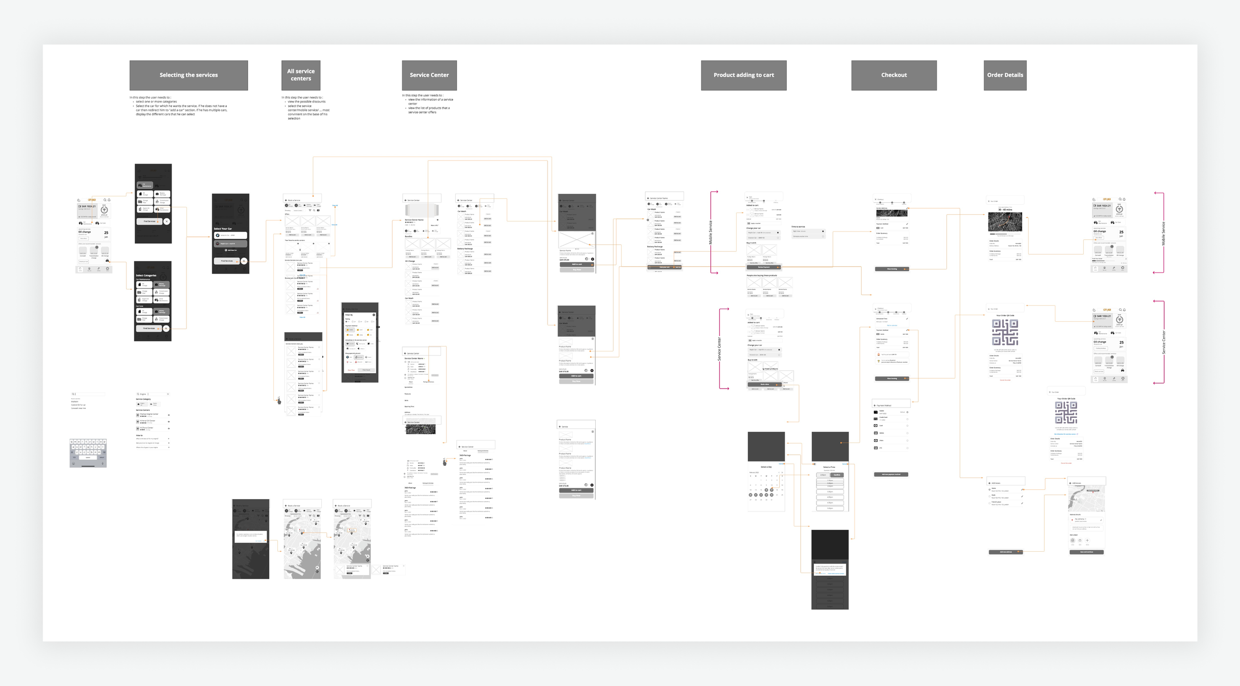 Before diving into design solutions, we analyzed existing automotive service platforms and mapped user behaviors across competitor applications. This research helped us understand industry patterns and identify opportunities for innovation.
