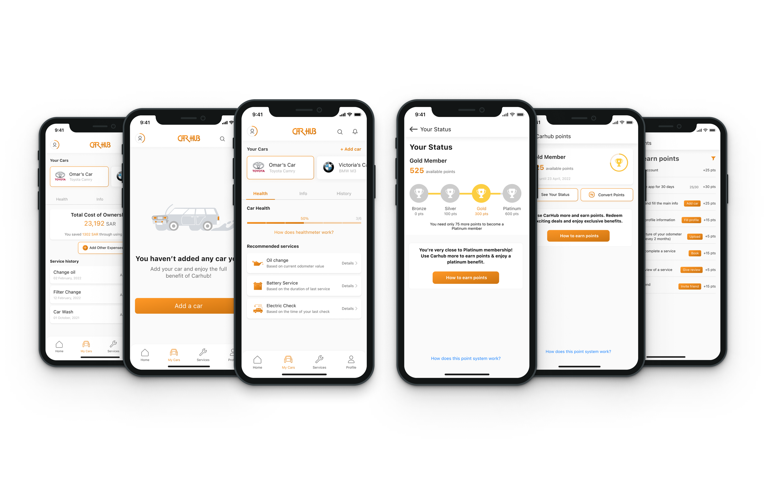 We designed an intuitive system that helps owners track their vehicle's maintenance needs while rewarding regular service engagement. The solution combines proactive service reminders with a points-based loyalty program.
