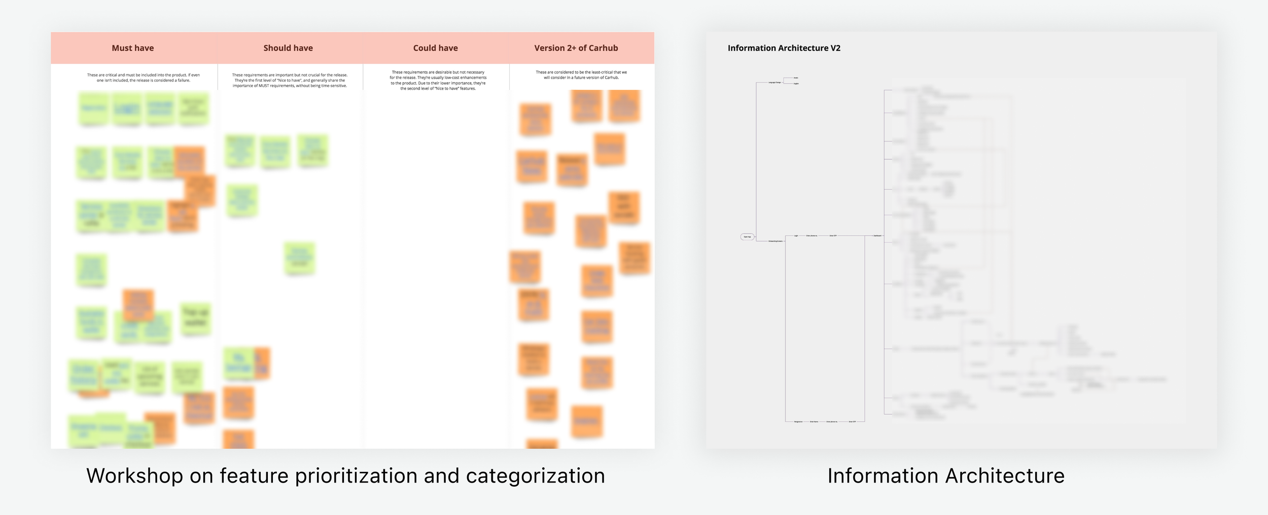 We had workshops with business and tech stakeholders to identify their plan for the future. We created the wishlist of features and a roadmap for the release. We developed the Information Architecture that stakeholders recommended as the automotive service can be tricky.