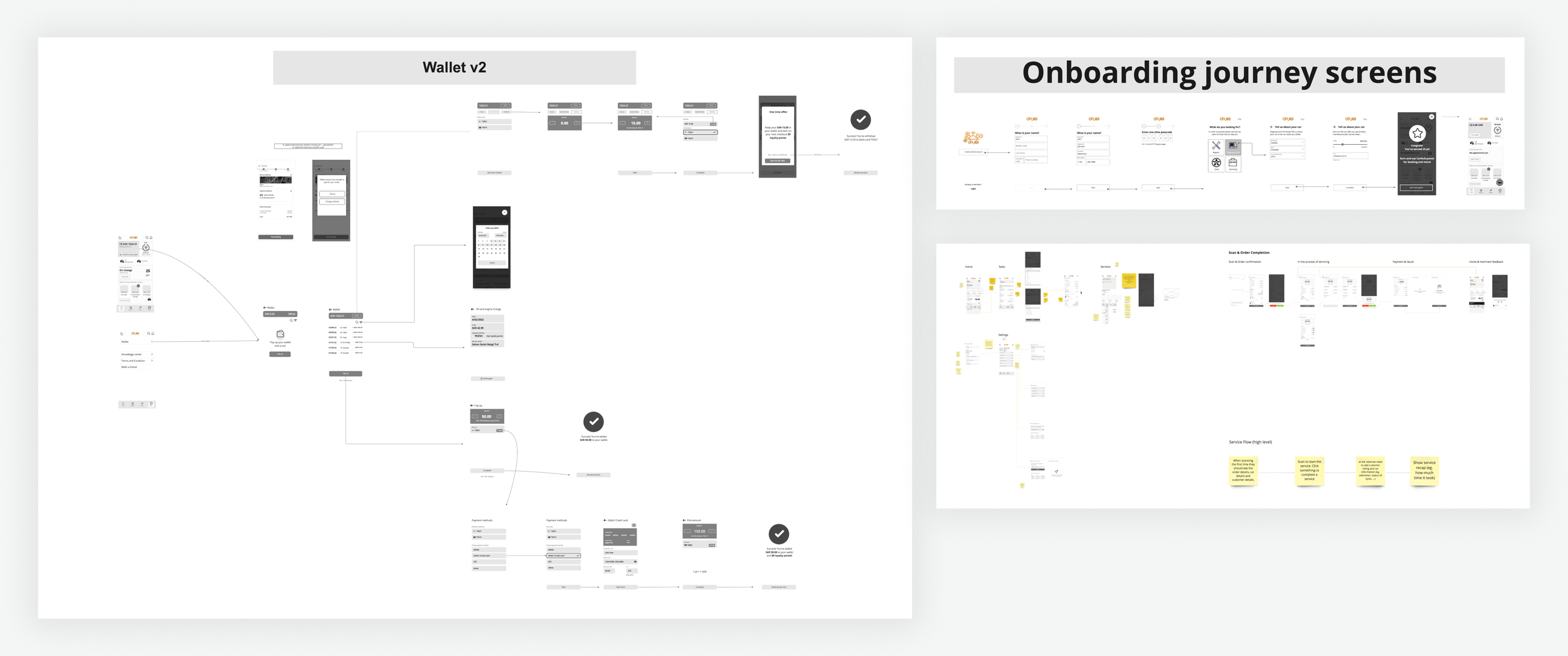 Using all our research insights we created the first iteration of wireframes for car owners and merchants.