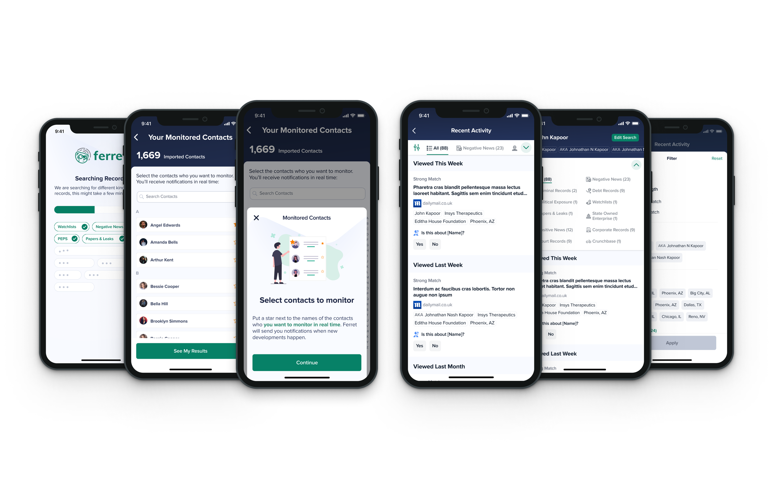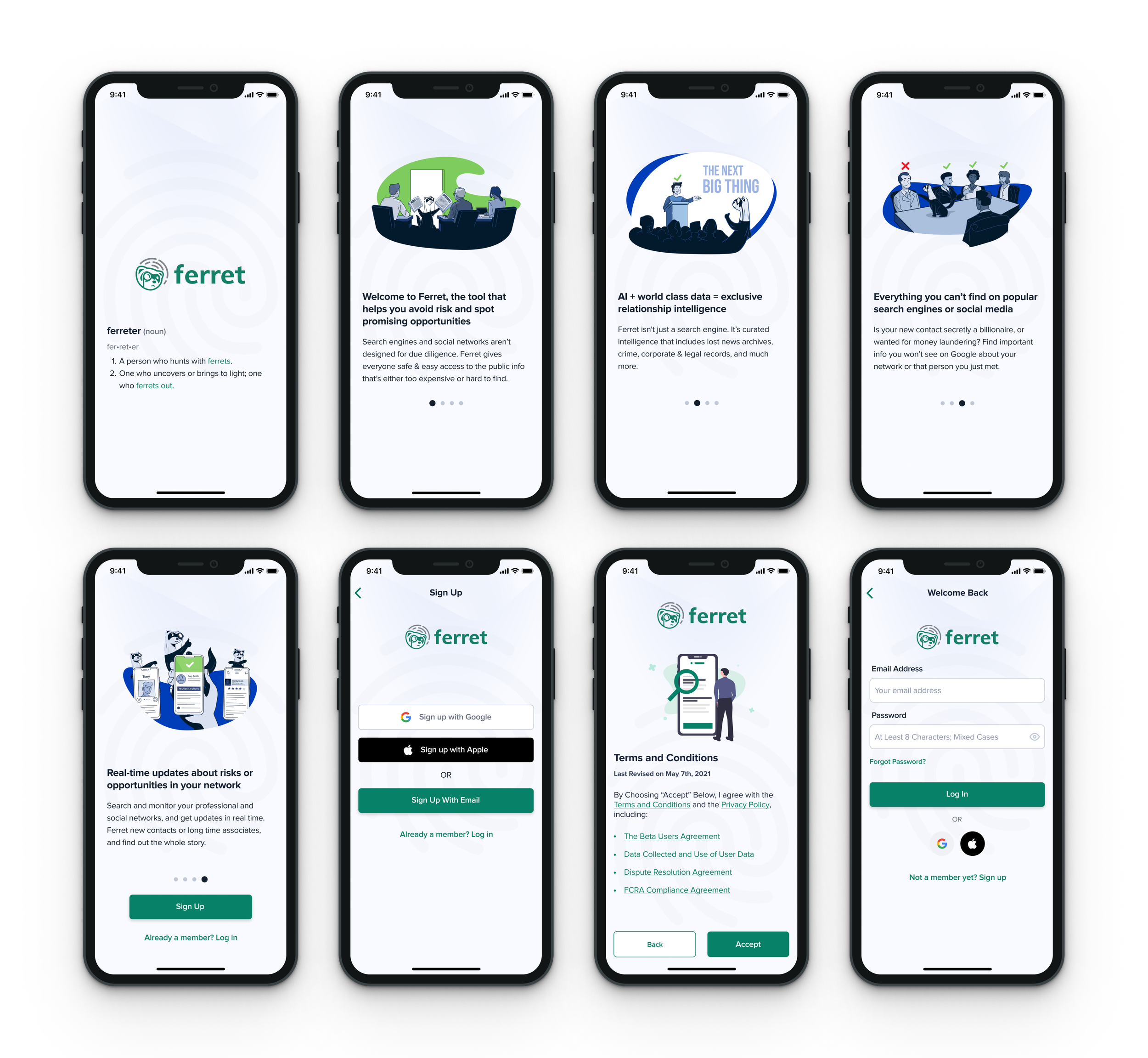 In an era of increasing business risks and expanding digital footprints, professionals face overwhelming amounts of information when conducting due diligence, with sophisticated analysis tools historically available only to banks and large investors. Ferret needed to address three key challenges: