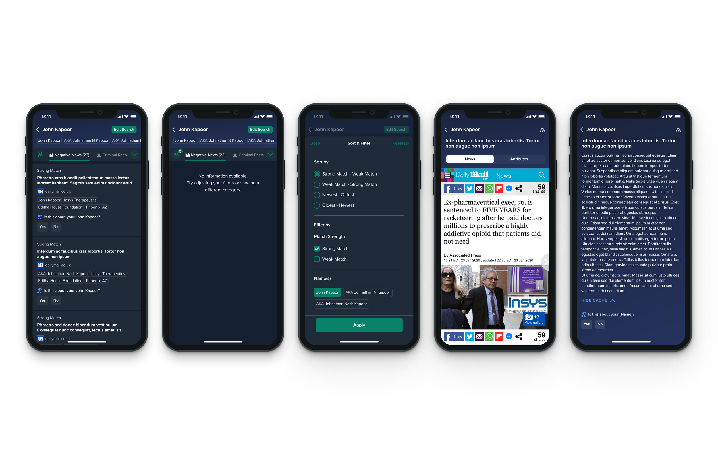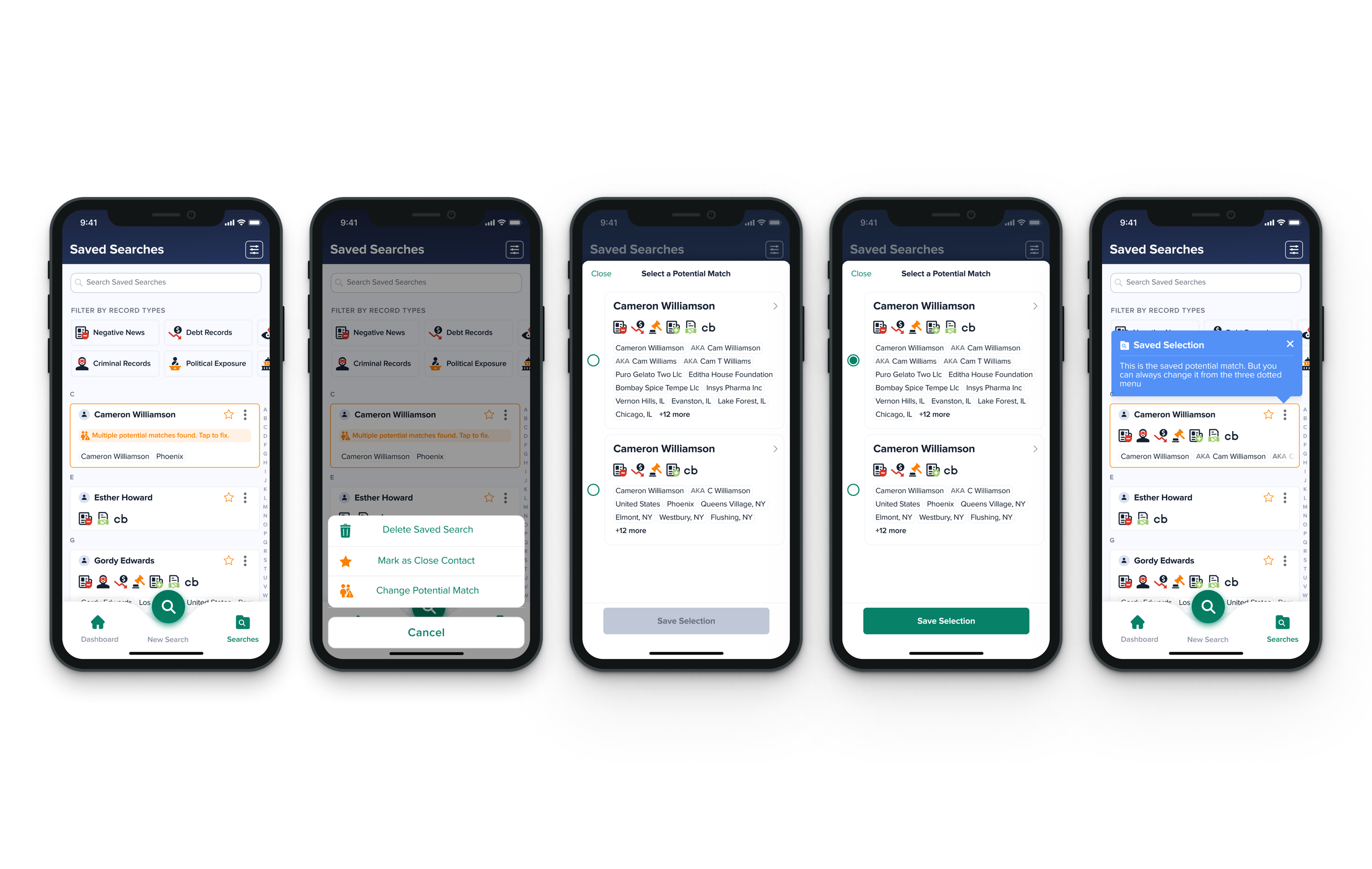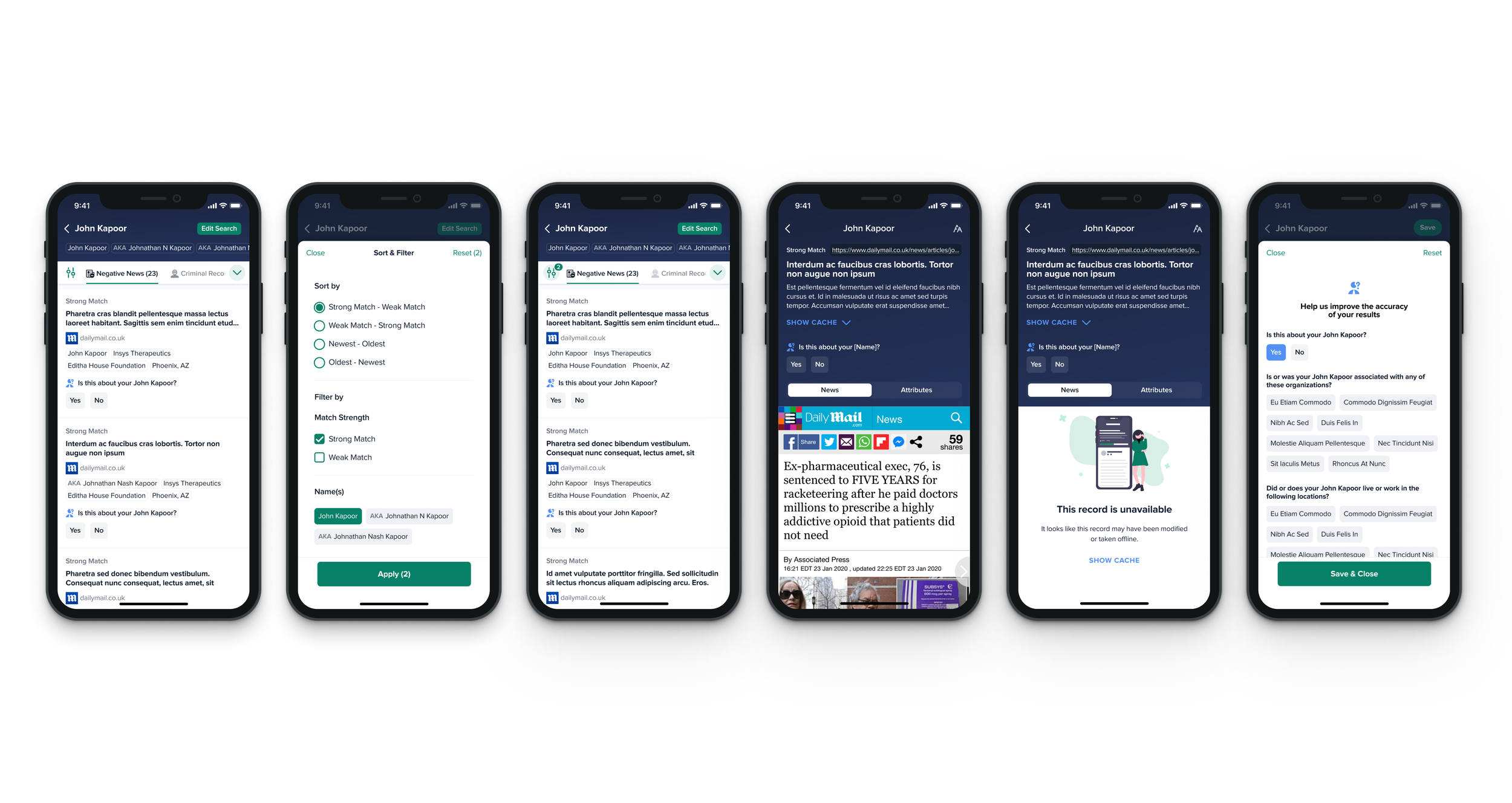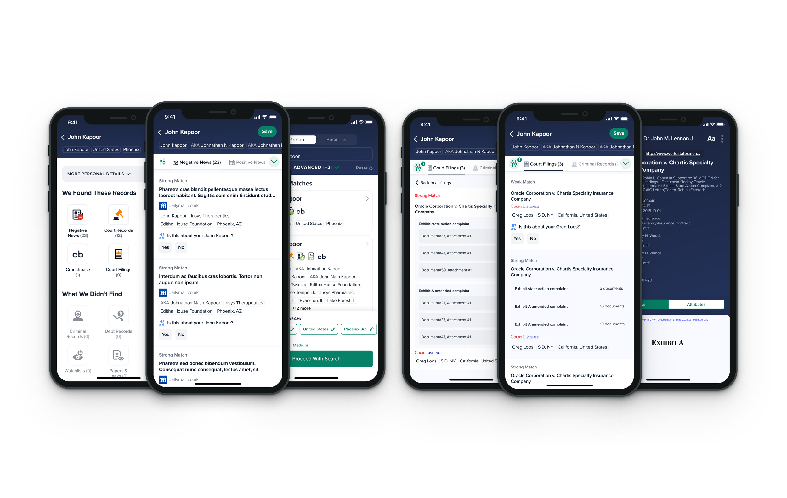 We simplified complex data relationships into an intuitive interface, making both potential matches and legal documents easily discoverable and actionable.